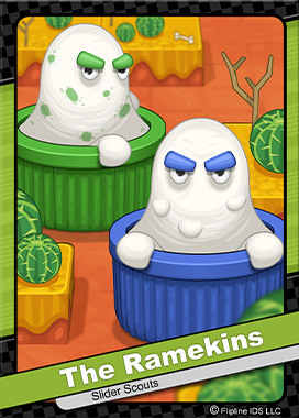 The Ramekins are saucy scoundrels from the Land of Munchmore, who come in two flavors: Blue Cheese and Ranch. Blue Cheese Ramekins slide around in blue ramekin cups, while Ranch Ramekins prefer green. Don’t let their size fool you, these little cups pack a punch, and they’ll ram anything that wanders into their lane. When they smack a wall, Ranch spins off clockwise, while Blue Cheese veers counterclockwise, turning tight hallways into a major danger zone. |