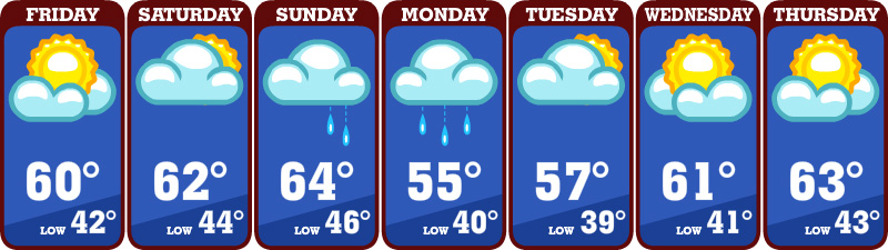 Friday looks pretty seasonable, and Saturday is still shaping up nicely, even with a few more clouds starting to wander in later on.