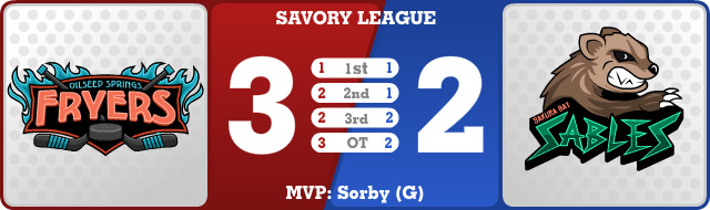 The Mumph here, and this one was never as close as the scoreboard tried to pretend. Maple Mountain Honey Bees take it 5 to 2 over the Oniontown Ringers. Winner, Honey Bees. MVP, Gridley.